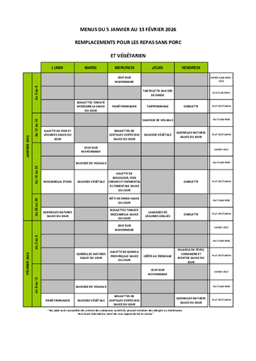 Les services périscolaires et restaurations fonctionnent les jours suivants : lundi, mardi, jeudi et vendredi.